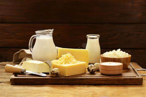 1 beurre, 1 crème fraîche, 8 yaourts, 1 fromage blanc, 1 morceau de fromage, 1 fromage à tartiner et 12 œufs